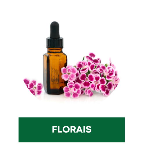 São extratos líquidos sutis, que promovem bem-estar emocional, cuidam da saúde do corpo e da mente. São preparados a partir de flores silvestres coletadas no auge da florada da planta. Todos os tipos de florais você encontra na Flora.